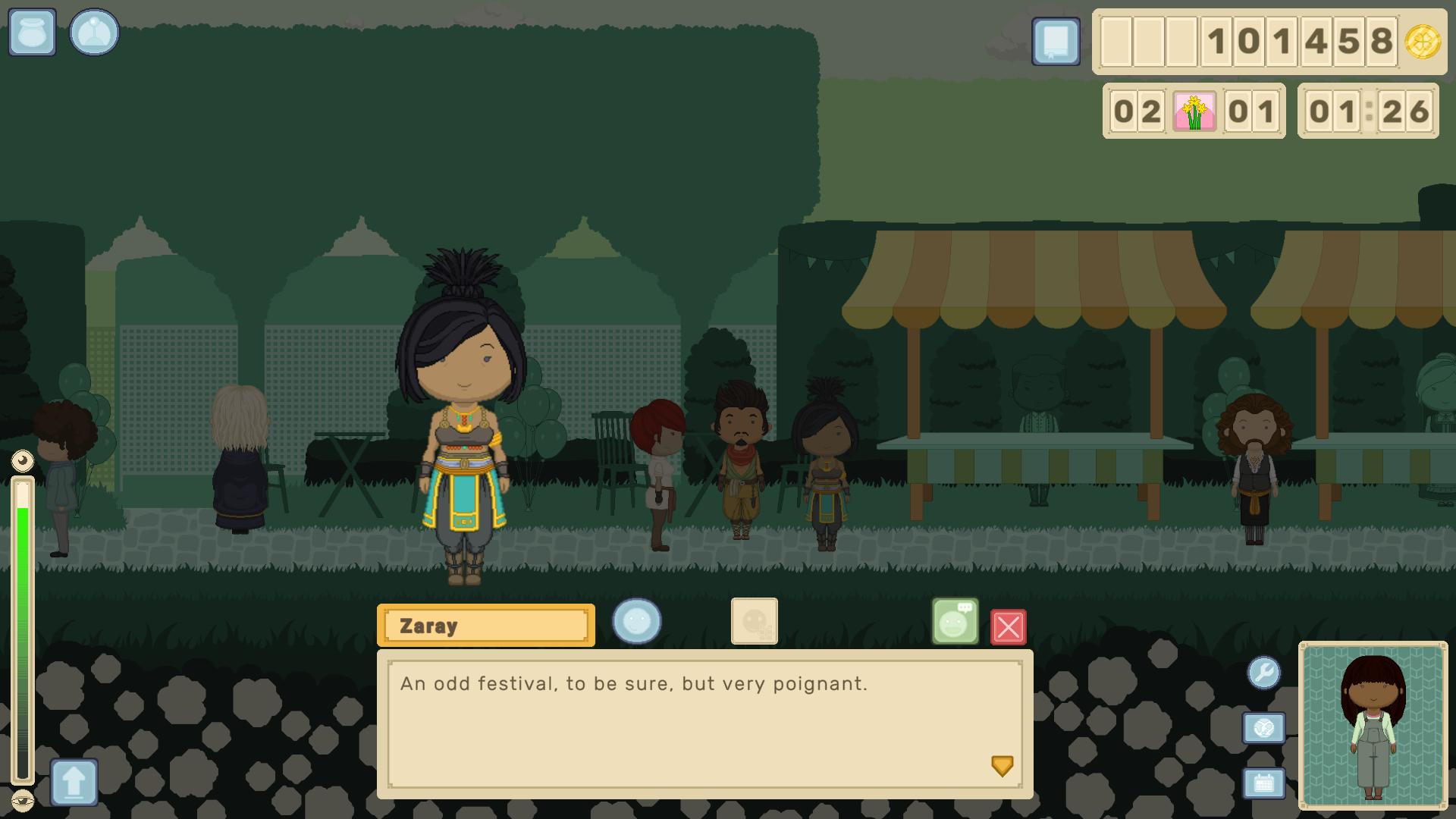 Hello again! Hope you’re doing well. No update this week because we’re working hard on getting the festivals implemented. Not all of them are in yet, but we can give you a little preview of a few.